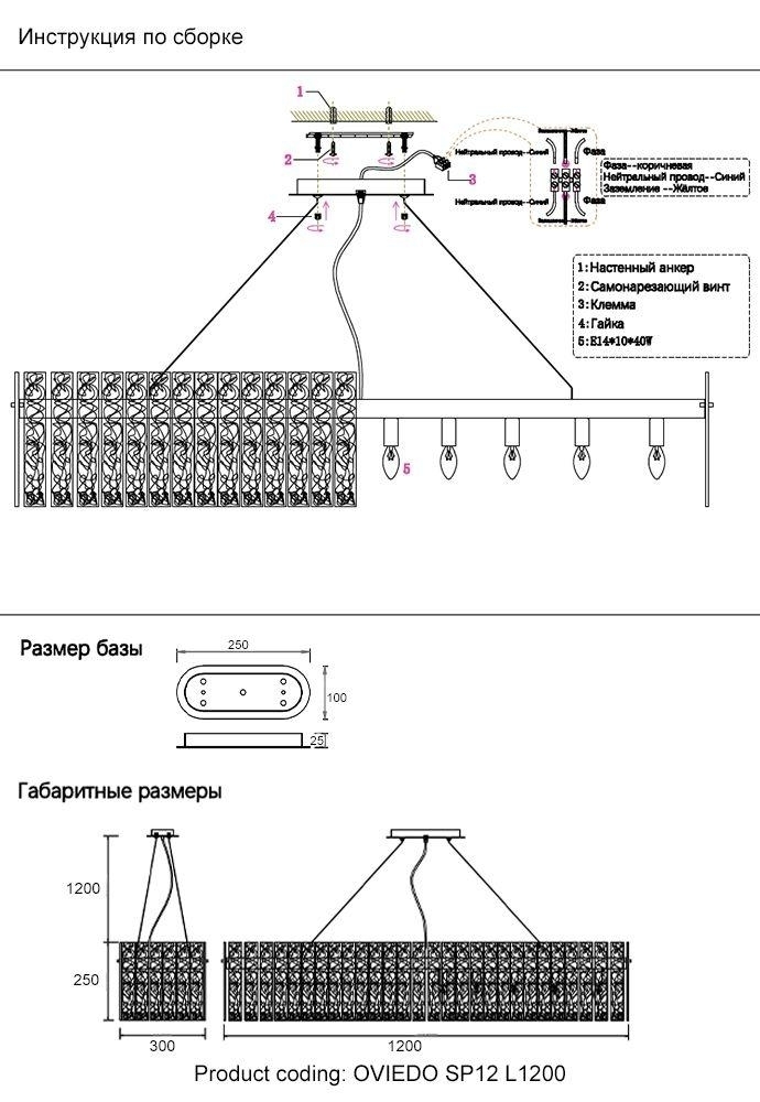 Подвесная люстра Crystal Lux Oviedo SP12 L1200