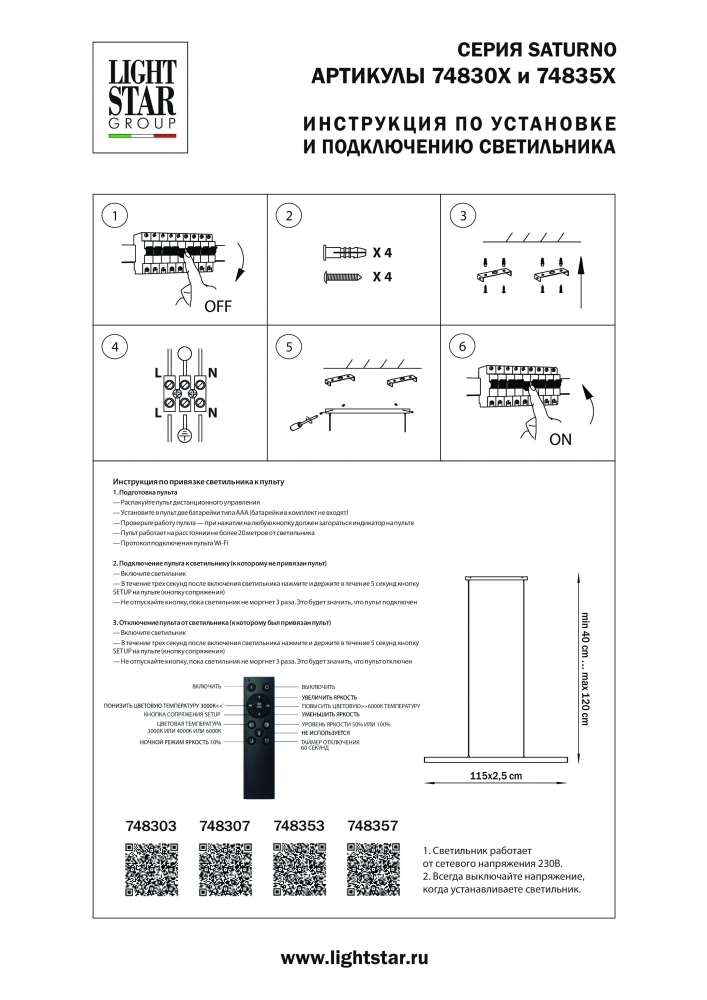 Подвесной светильник с пультом ДУ Saturno Lightstar 748307