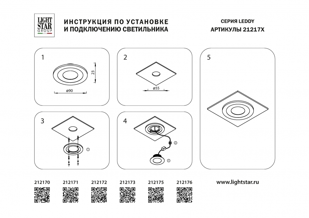 Встраиваемый светильник Lightstar Leddy 212176